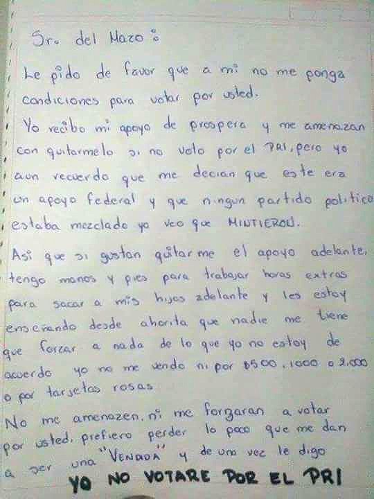 carta que beneficiaria d #Prospera envio a pelmazo